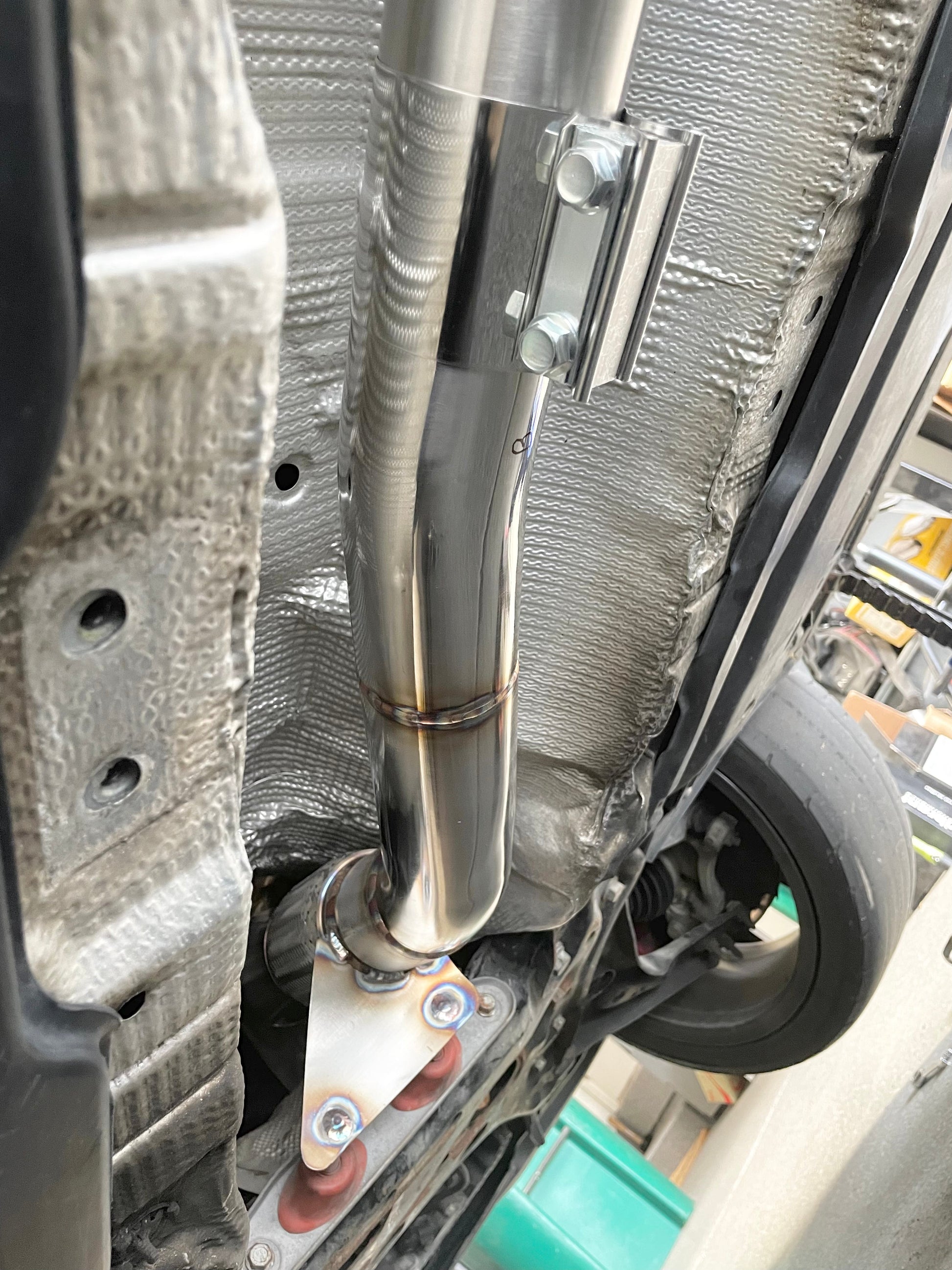 This downpipe for the FWD MQB platform features a 3.5" entry that contours down to 3" at the flex section for the rest of the way back.