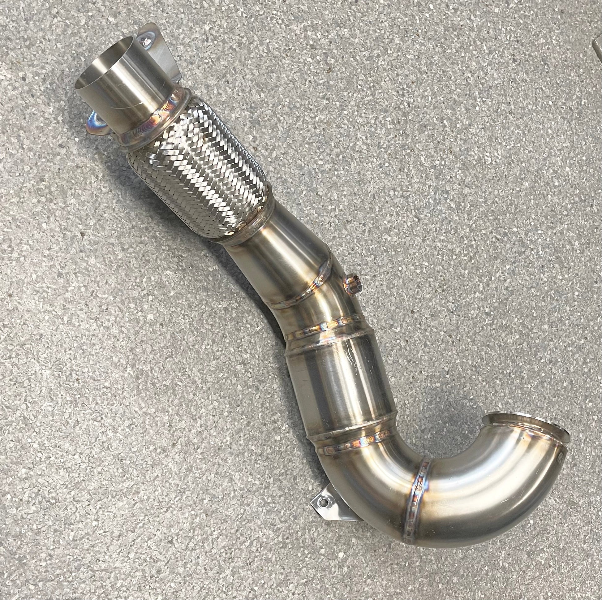 This downpipe for the FWD MQB platform features a 4" entry that contours down to 3" at the flex section for the rest of the way back.