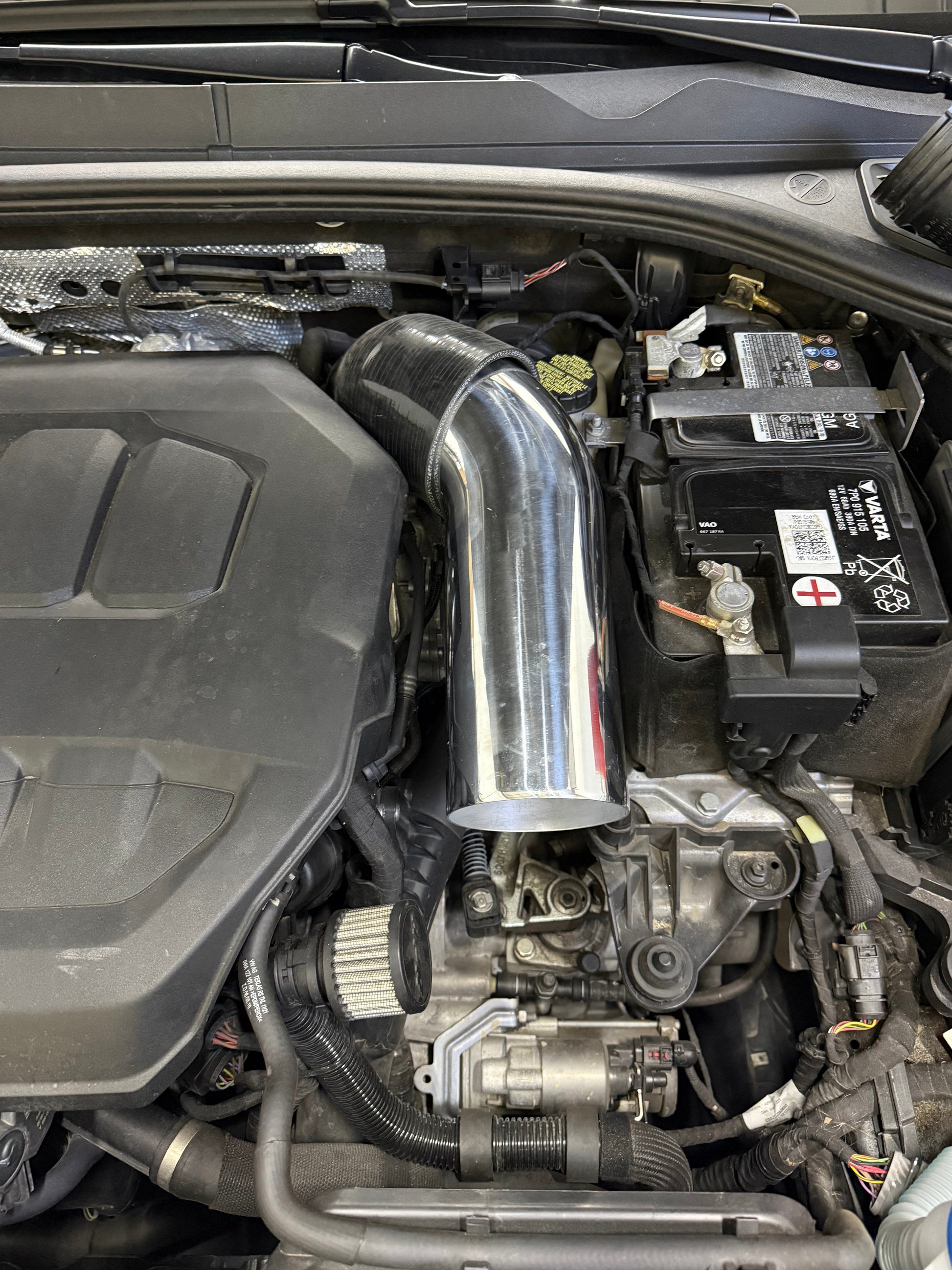 This is a 4" air intake tube for those with hybrid or big turbos on their MQB EVO 2.0T.